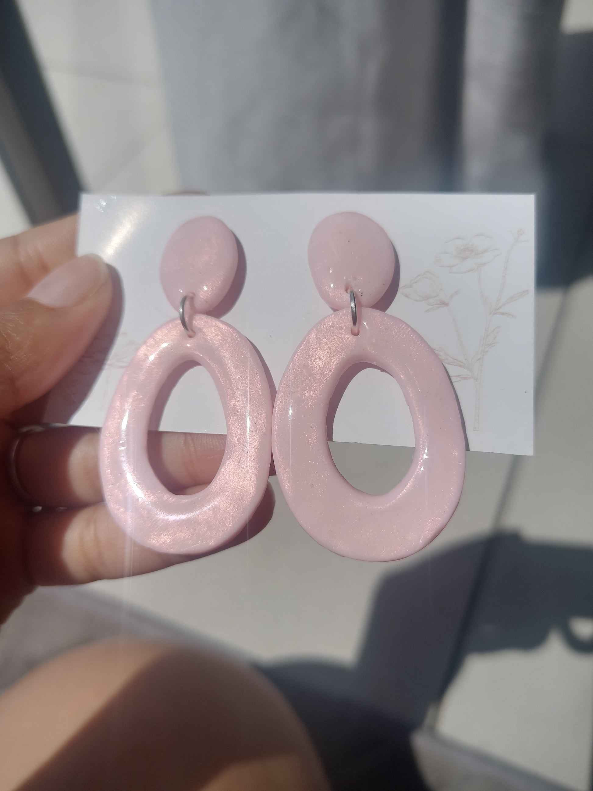 2 tier polymer clay earrings with pink pigment.Ā