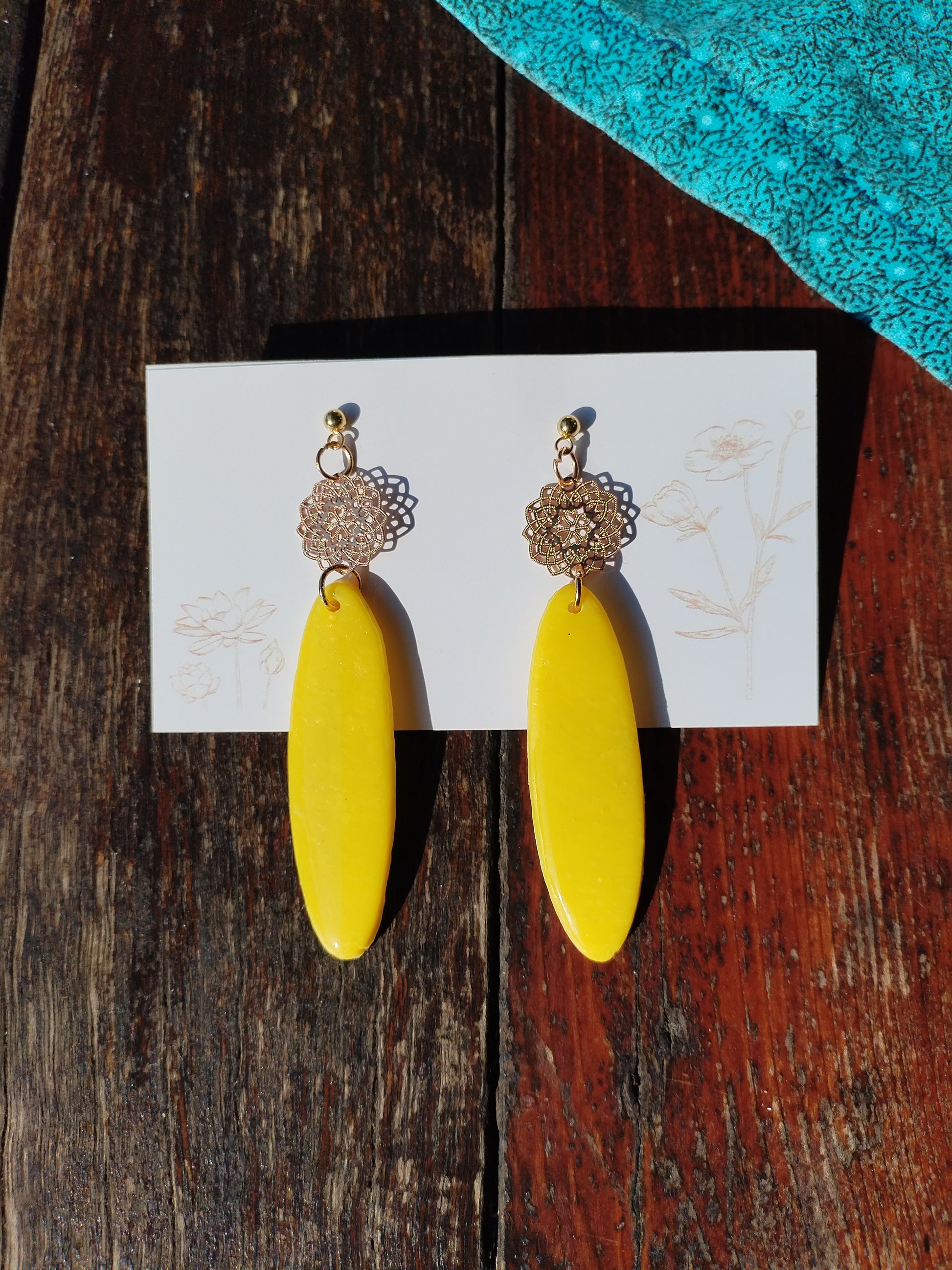 3 tier polymer clay earrings with gold, decorative center piece.Ā