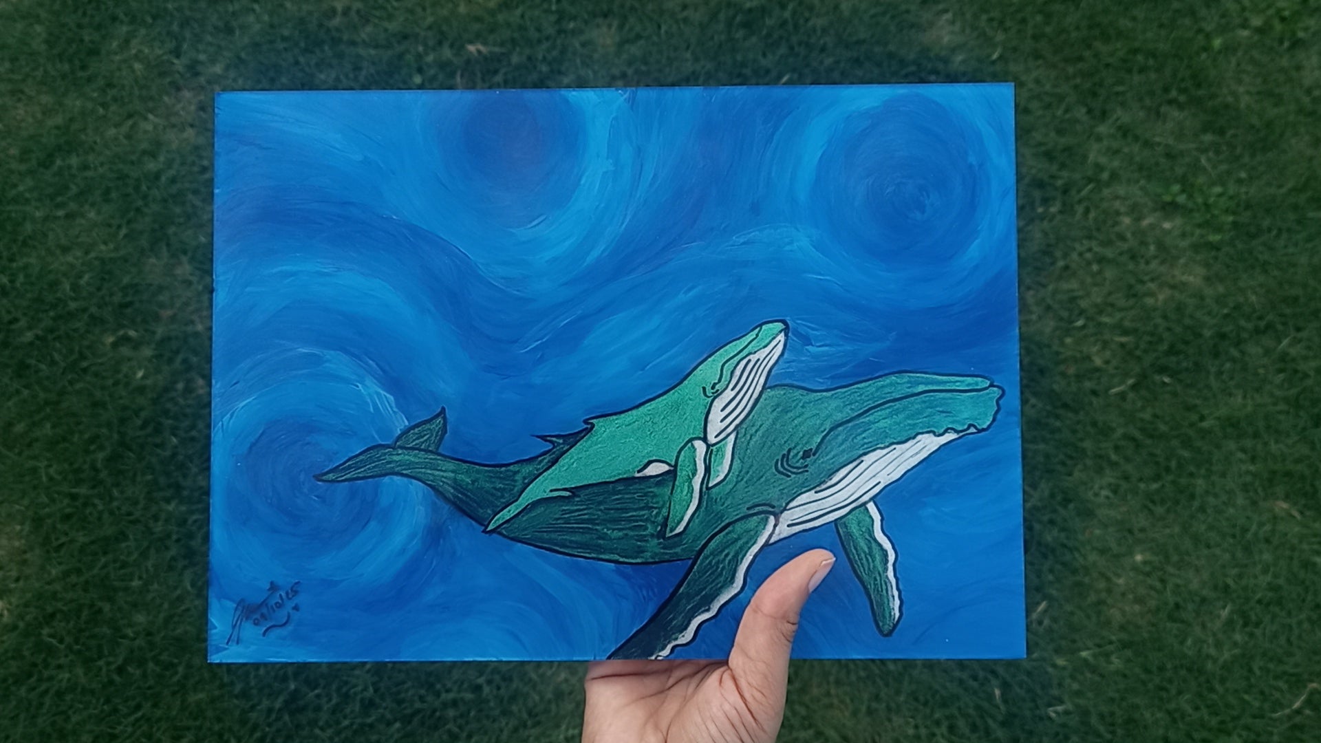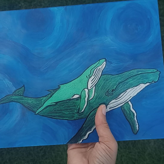 Medium sized, hand painted, glass painting with colour changing pigment detail.Ā